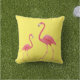 Outdoor throw pillow is shown in a solid color of yellow with a cute flamingo print.