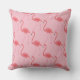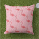 This outdoor throw pillow is shown in a pink color with a tropical flamingos print.