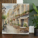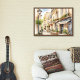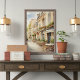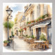 This enchanting poster captures the essence of a serene Parisian street through the delicate and fluid medium of watercolor. The scene unfolds along a quaint road, lined with charming, historic buildings that seem to whisper tales of yesteryears. Each brush stroke brings to life the vibrant yet soft hues of the Parisian architecture, with pastel-colored facades, wooden shutters, and wrought-iron balconies adding to the picturesque elegance. The road meanders gently, inviting the viewer to imagine a leisurely stroll through the heart of Paris, under a sky washed in the gentle light of dawn or the subtle glow of dusk. This piece not only showcases the artist's skillful manipulation of watercolor to evoke mood and atmosphere but also captures the timeless beauty of Paris in a way that feels both intimate and inviting.