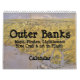 This is a calendar featuring various subjects and elements of the Outer Banks area. Throughout the calendar there are photographs, maps and artwork that illustrate the essence of the outer banks.