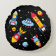 Outer Space Adventure Round Pillow – Rockets, Planets & UFO for Kids’ Room Decor