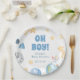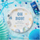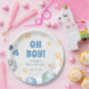 Baby Shower Party Supplies featuring "oh boy!", event name and date framed by watercolor illustrations of stars, planets and rockets. Coordinates with the Out of this World collection found in the Adore Paper Co. Zazzle Shop.