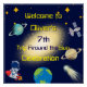 Welcome guests to an unforgettable space adventure with this 20" outer space birthday welcome poster! Designed with a dark blue starry background, glowing galaxy center, colorful planets, Earth, a shooting meteorite, and an astronaut riding a rocket ship, it sets the stage for an epic celebration. Perfect for greeting partygoers at the entrance or decorating the party space, this poster brings cosmic charm and excitement to any birthday party. Coordinates beautifully with our matching invitations, thank you cards, plates, napkins, stickers, coasters, and more for a fully themed galaxy celebration.