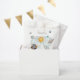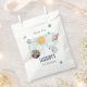 Celebrate your child's special milestone with this magical outer space themed birthday favor bag. Featuring imaginary planets, moon and stars in navy and gold colorway. These Outer Space 1st Birthday Galaxy Sun Moon Stars and Planets Favor Bags are perfect for a simple birthday party. The modern whimsical design showcases a navy-blue watercolor background adorned with a yellow vibrant sun, smiling grey moon, pastel-colored planets, and gold scattered glow stars.