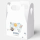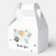 Celebrate your child's special milestone with this magical outer space themed birthday favor box. Featuring imaginary planets, moon and stars in navy and gold colorway. These Outer Space Birthday Galaxy Sun Moon Stars and Planets Favor Boxes are perfect for a simple birthday party. The modern whimsical design showcases a navy-blue watercolor background adorned with a yellow vibrant sun, smiling grey moon, pastel-colored planets, and gold scattered glow stars.