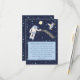 Bring a book instead of a card, and this cute card will help. This has a dark blue background with blue midnight stars, a little spaceman, full yellow moon, and spaceship and matches baby shower invitation. Spaceman's banner has "Bring a Book!"