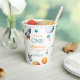 3... 2... 1... LIFT OFF! This cup was designed to celebrate a successful first trip around the sun! The little astronaut and his rocket ship are exploring the watercolor planets in a galaxy sprinkled with golden stars. It’s a fun, imaginative way to serve hot (or cold!) drinks at a boy's first birthday party. Get ready for a cosmic adventure and a stellar celebration!