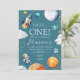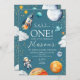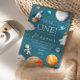 Outer Space First Birthday Rocket Teal Blue Invitation