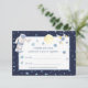 Outer space Baby Name Suggestions with blue stars on midnight blue background. Each card has a spaceman, spacecraft and pale yellow moon on white background. Enclose in the envelope with matching invitations.