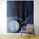 Blue tinted outer-space scene with rocket and rover. illustration by becky nimoy 2018.