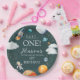 Blast off into birthday fun with this adorable outer space paper plate! Watercolor rockets, planets, clouds, and a brave little astronaut create a dreamy galaxy theme. Inspired by a tiny explorer’s first trip around the sun, these plates add starry charm to any 1st birthday celebration.