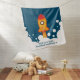 An out of this world baby blanket for a special arrival. This cute outer space design features a space rocket ship coming out of the clouds. Room for both a baby name and a message so this would make a fabulous personalized baby shower gift or new baby present. Dark blue background can be changed to any color.
