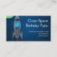 Celebrate the boy's birthday or special occasion with this cool space rocket ship in outer space. Dark blue sky with stars and colorful planets, and a silver rocket shooting through the sky. Colorful and bright. All Designs Copyright © 2012 www.CustomInvitesOnline.com