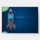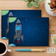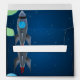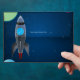 Celebrate the boy's birthday or special occasion with this cool space rocket ship in outer space. Dark blue sky with stars and colorful planets, and a silver rocket shooting through the sky. Colorful and bright. All Designs Copyright © 2012 www.CustomInvitesOnline.com