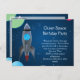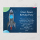 Celebrate the boy's birthday or special occasion with this cool space rocket ship in outer space. Dark blue sky with stars and colorful planets, and a silver rocket shooting through the sky. Colorful and bright. All Designs Copyright © 2012 www.CustomInvitesOnline.com