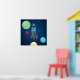 Dark night outer space sky with colorful and bright planets and white stars, with a silver rocket ship flying through the sky. Great for a little boys room for the guy who loves space and travel. All Designs Copyright © 2012 www.CuteComfy.com
