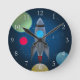 Dark night outer space sky with colorful and bright planets and white stars, with a silver rocket ship flying through the sky. Great for a little boys room for the guy who loves space and travel. All Designs Copyright © 2012 www.CuteComfy.com