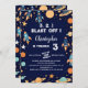 Outer Space Rockets Planets Navy Blue Birthday Invitation