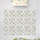 A palette of dusty blue, peach, sage, and cream for a calming vibe