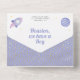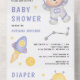 Amaze your guests with this modern space theme baby shower invite featuring a cute teddy bear in astronaut costume and modern typography with detachable diaper raffle card. Simply add your event details on this easy-to-use template to make it a one-of-a-kind invitation.