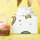 This cute wrapping paper features an outer space theme with astronauts, planets and stars.