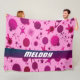 outer space planets galaxy moon and stars pink pattern Fleece Blanket.