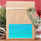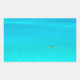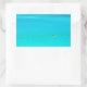 Retangular photo sticker of a man paddling in an outrigger canoe boat in the bright blue lagoon of the tropical Island Bora Bora near Tahiti in the Pacific archipelago French Polynesia.