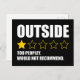 Outside – Too Peopley. Would Not Recommend. This sarcastic funny quote accessory is great for men, women, teens & kids who are introverts & a little anti-social, love to stay inside at home, and would give outside a one star review. Too many people! If you’re an introverted person who’s antisocial, you prefer to avoid people, love the solitude of your own home, have a sense of humor & love sarcasm, then this funny saying design is for you!