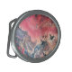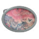 A silver-tone oval belt buckle framing an original fluid art by WestJack Studio. Blush and pink tones are well complemented by the navy accents. Designed in Canada.