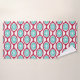 This towel set has a turquoise washcloth, a beet-colored hand towel, and a bath towel with a mid-century modern design of beet-colored ovals connected into chains with turquoise concentric circles made of circle rings inside. Same design, different colors? Message me.