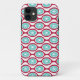 This phone case has a mid-century modern design of beet-colored ovals connected into chains with turquoise concentric circles made of circle rings inside. Same design, different colors? Message me.