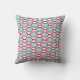 This throw pillow has a mid-century modern design of beet-colored ovals connected into chains with turquoise concentric circles made of circle rings inside. Same design, different colors? Message me.