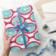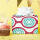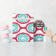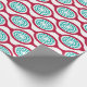 This wrapping paper has a mid-century modern design of beet-colored ovals connected into chains with turquoise concentric circles made of circle rings inside. Same design, different colors? Message me.