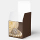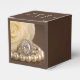 Customize the pretty Oval Diamond Ring and White Rose Wedding Favor Box with the personal names of the bride and groom and date for use at your classy engagement party, bridal shower or marriage reception. These elegant custom botanical party favor boxes feature a floral photograph of a white rose flower blossom, white pearl necklace and oval diamond engagement ring with a brown background.