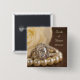 Customize the elegant Oval Diamond Ring and White Rose Wedding Button with the personal names of the bride and groom and marriage ceremony date to create a one of a kind party favor or keepsake gift. This classy custom botanical wedding button features a close up floral photograph of a white rose flower blossom, oval cut diamond engagement ring and white pearl necklace with a brown silk background.