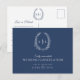 Oval leaf wreath monogram wedding cancelation blue announcement postcard