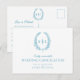 Oval leaf wreath monogram wedding cancelation teal announcement postcard