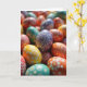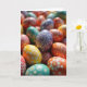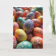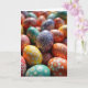 This design shows a close-up, high-angle view of many egg-shaped decorations packed closely together, filling the frame like a festive spread 🌷. Each one is painted in a different shade—deep purple, orange, yellow, teal, red, and turquoise—then topped with fine white patterns that look carefully drawn. Bright natural light glides across the smooth surfaces, creating small highlights and soft shadows that make the shapes feel rounded and touchable. In the center, a tighter cluster sits in sharper focus, as if the eggs are leaning toward one another in a friendly huddle 🐇. Toward the edges, the shapes blur gently, turning the background into a soft wash of color that suggests more eggs beyond what you can count. There isn’t any visible wording on the design, so no text placement or lettering color appears anywhere on the front. One especially noticeable purple egg carries an intricate white circular motif, while nearby orange and yellow eggs show simple floral-like designs and the teal one has tiny daisy-style marks. The white detailing stays consistent across every egg, standing out crisply against the saturated colors in the foreground while the rest fades into a pastel-like blur behind.