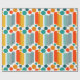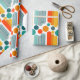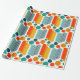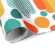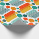 This wrapping paper has a mid-century modern design of ovals and circles in orange, gold, teal, and turquoise on a field of white. Want the same design with different colors? Message me.