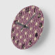 This wall clock has an art deco design of ovals, rectangles, and circles in horizontal lines repeating in rows.