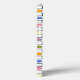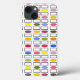 This phone case has a mid-century modern design of repeating rectangles and ovals in flower garden colors.