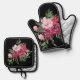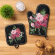 Black, Pink and Red Floral Design Potholder Oven Mitt Set