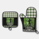 Painted Wickedly Good Witch Green Gingham Plaid Oven Mitt and Pot Holder Set - This Oven Mitt and Pot Holder Set features a green and black painting of a witch in an enchanted forest on top of a white and green gingham checkered plaid pattern. Designed for those who loves dark fantasy and spooky things.