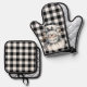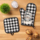 Black And White Buffalo Plaid Gnome Chief Oven Mitt And Pot Holder Set For Cooking