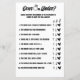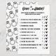 Make your bridal shower or bachelorette party unforgettable with this Over or Under wedding guessing game! Guests will have a blast guessing whether the numbers in each statement are over or under the real amount. Featuring a modern black-and-white design with chic ring illustrations, this printable game is a perfect addition to your wedding festivities.