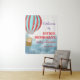 Banner for baby shower party features a cute cub flying over the sky.