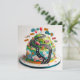 CUTE OVER THE HILL THEMED CAKE DECORATION ON THE FRONT OF THE CARD. COMPLETELY EDITABLE COPY ON THE BACK.