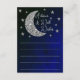 Over the moon baby shower with silver moon and stars against a black and blue night sky background