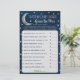 This "over the moon" game is perfect for anyone having a baby shower this year. The design features a silver moon with stars on a navy blue watercolor background and easy to personalize template wording. Simply give these game cards out to your guests to play at the shower, whoever is closest to the actual total cost, without going over, wins a prize of your choice!