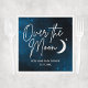 Over the moon baby shower party napkins with an editable name and date. Baby shower for a mother expecting a baby boy or girl table decor. Celestial-themed party supplies with a moon and stars on a galaxy background.